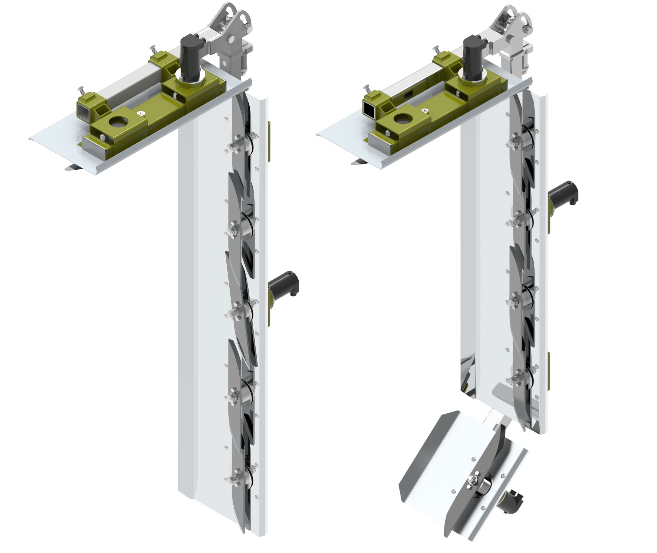 Over-row knife trimmers for mechanization of summer trimming the green annual shoots in vineyards with pendling suspension. Wide range of models and versions.