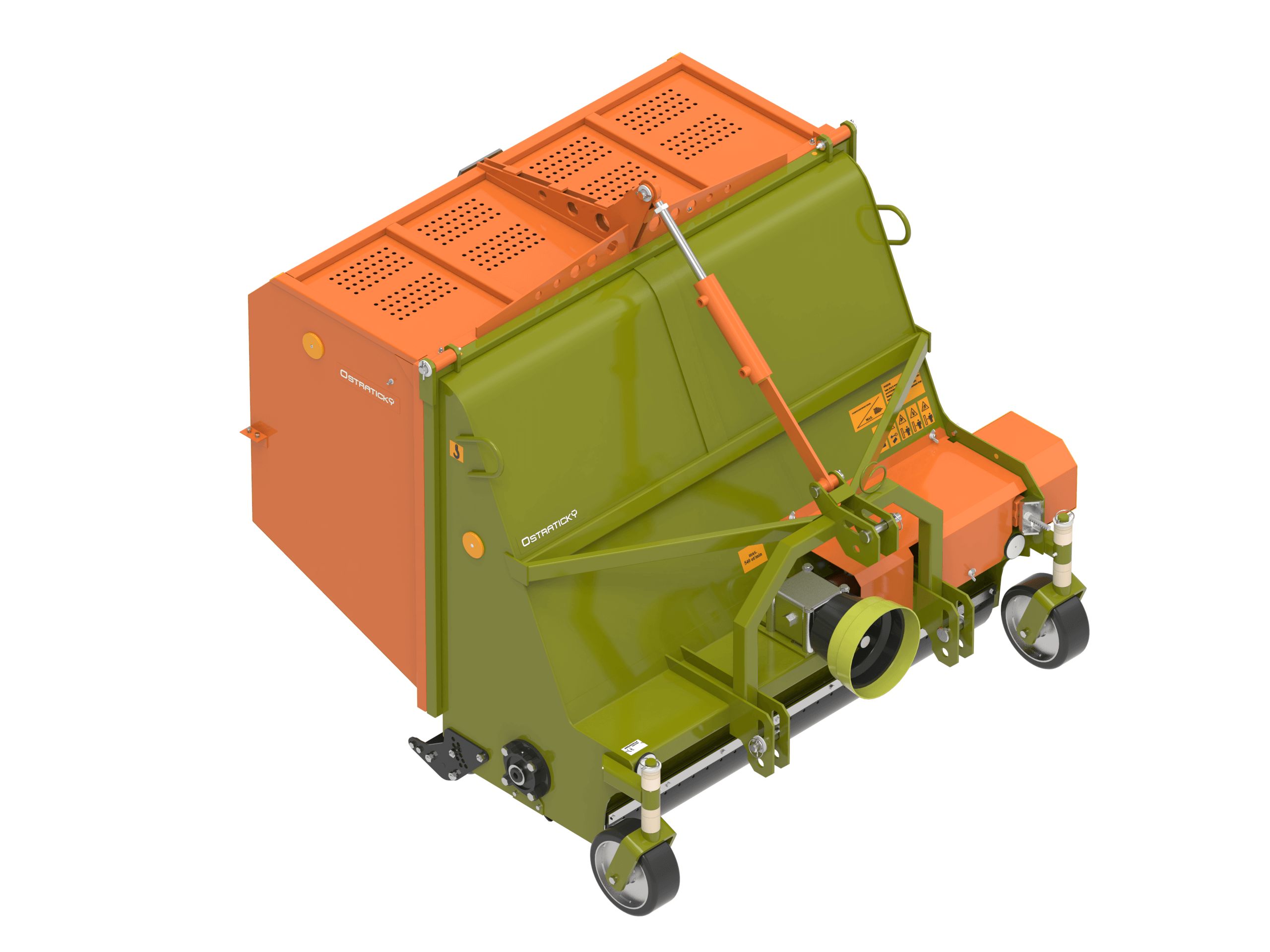 Multipurpose machine for lawn management in parks, public areas and sports grounds. Mowing grass with spoon knives, verticutting the lawns and collecting leaves and small rubbish into the basket.