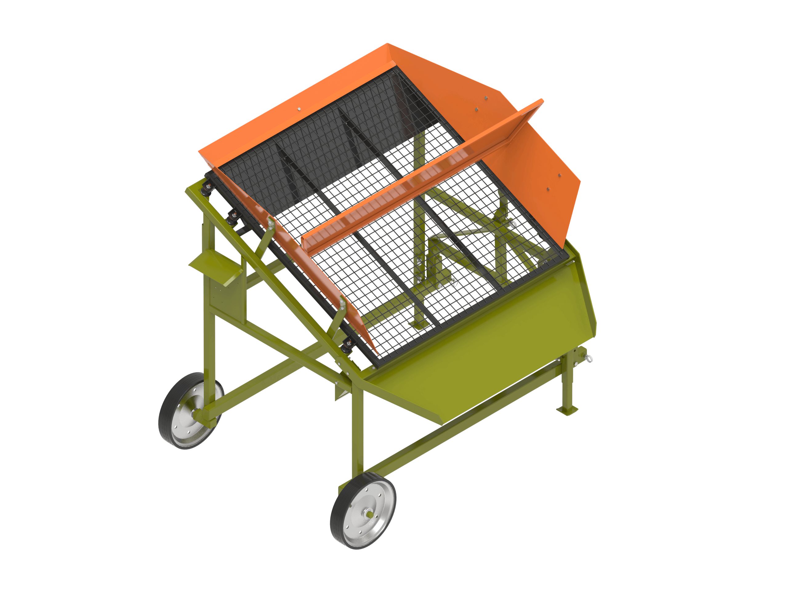 Vibrating screening machine for small and medium sized composting plants and other smaller facilities where is necessary to sort materials according to size.